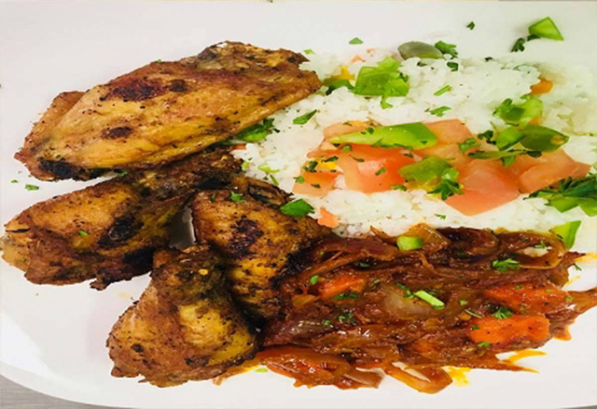 A tomato sauce enriched with a special blend of seasoning, onions and mixed vegetable sauteed in palm oil with your choice of chicken, lamb or fish served on a bed of white or brown rice.